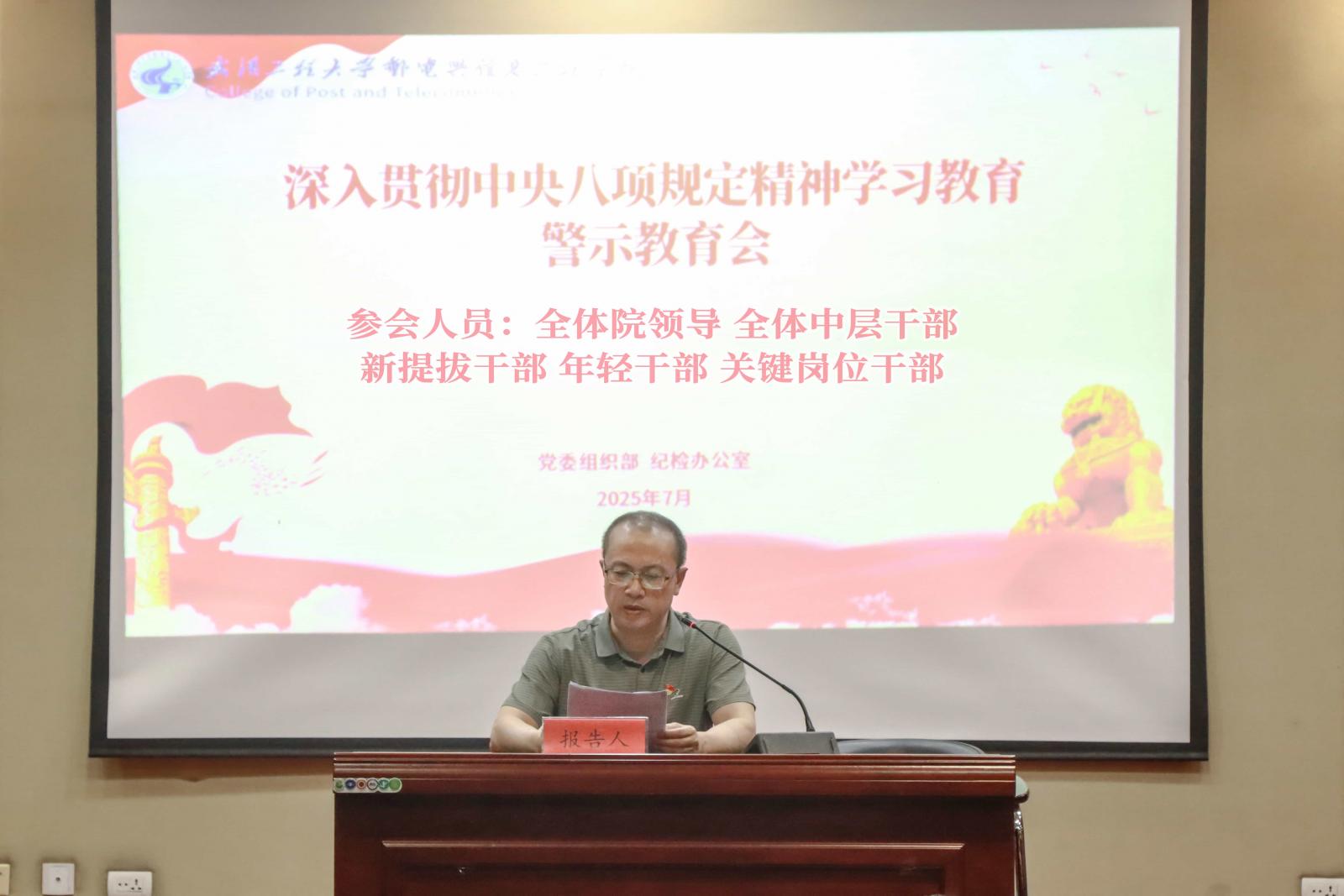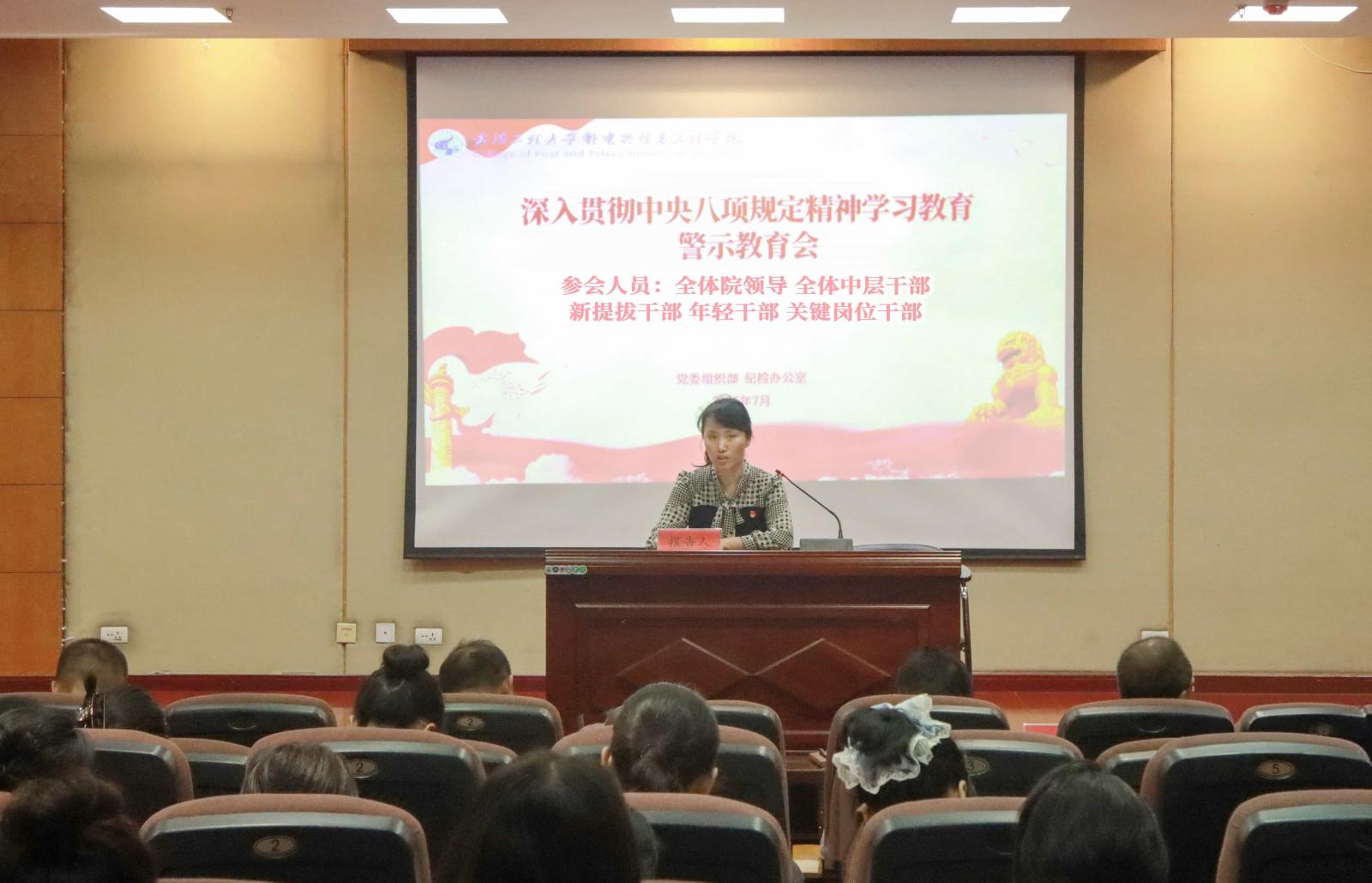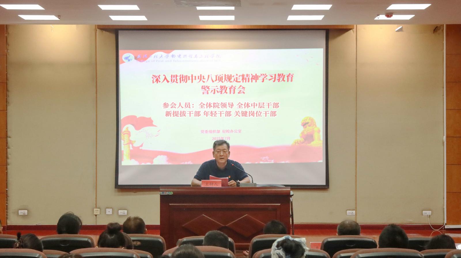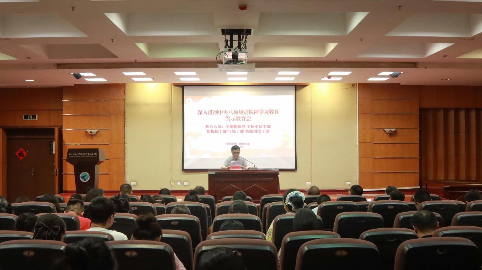 (通讯员 刘玉清 摄影 赵子龙)7月2日下午,学院在3教6楼多功能报告厅召开深入贯彻中央八项规定精神学习教育警示教育会,全体院领导,中层干部,新提拔干部、年轻干部、关键岗位干部参加会议。会议由党委书记李国林主持。