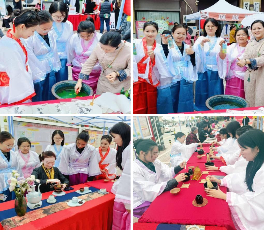 支部师生党员与青云居社区携手合作,精心设置了汉香、点茶、糖画、大漆、剪纸五大非遗体验专区。师生们身着典雅汉服,在各展位热情洋溢地宣讲,成功为居民搭建起一个双向互动的文化交流平台,使中华优秀传统文化在社区生活中焕发出时代新活力。 在非遗创作体验环节,党员们积极参与漆艺、点茶、剪纸三项传统技艺的实践,现场互动氛围异常热烈。大家在指尖翻飞间,深刻体悟到非遗匠人的匠心独运与智慧传承。