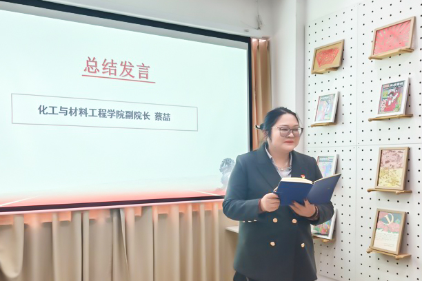 支部党员童晓青、徐彩丽、刘娜进行了交流分享,分别围绕“化学学科中思政教育的融合”“《药物分析》课程教学中育人元素的内涵与挖掘路径”以及“协同育人的理论基础与实践模式”三个主题展开。她们结合自身教学实践,深入探讨了专业课程中蕴含的家国情怀、职业道德等思政元素,并剖析了协同育人的具体实践路径,为专业发展与课程思政的创新提供了宝贵的借鉴。 学院副院长蔡喆总结发言表示,在新时代教育强国建设的背景下,推动课程思政高质量发展,是落实“立德树人”根本任务的关键所在。她提出两点具体要求:一是要进一步强化党组织在教育教学改革中的政治引领作用;二是要充分激发党员教师在课程思政建设中的先锋模范作用。她号召全体教师以此次主题党日活动与教研活动的融合为契机,为培养药物研发、生产、管理领域的复合型人才贡献力量。