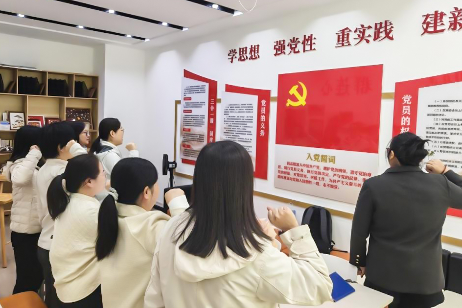 党建引领汇聚力量,教研赋能促进提升。2025年10月22日下午,化工与材料工程学院党总支第三党支部成功举办了“深挖专业育人元素,构建协同育人新格局”的特色主题党日活动。此次活动充分发挥了党建引领作用,实现了党建活动与教研活动的无缝融合,积极探索“党建+教研”的创新模式,革新活动载体,持续深化“绿化育人”党建品牌的内涵与影响力。 (一)活动主题 深挖专业育人元素 构建协同育人新格局 (二)参与人员 学院副院长蔡喆、化工与材料工程学院第三党支部全体教师党员 (三)活动纪实 (通讯员 蔡喆)活动伊始,全体党员齐声奏唱国歌,庄严地拉开了主题党日的序幕。在副院长蔡喆的领誓下,全体党员面向党旗,高举右拳,重温入党誓词。此次活动由党支部书记孙安琪主持。
