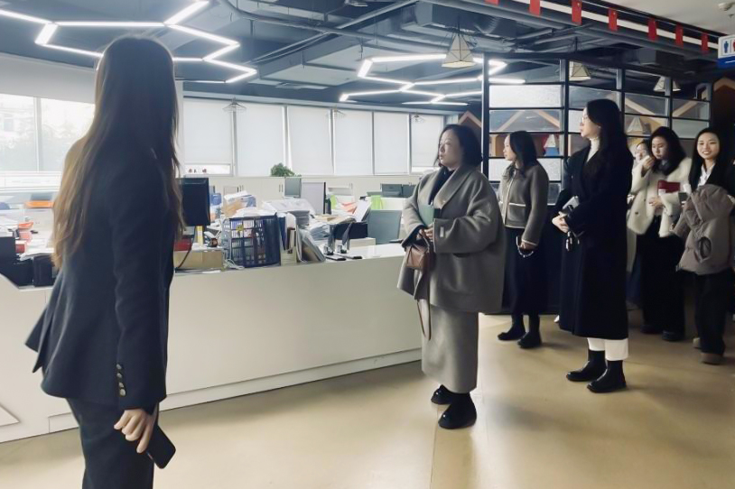 全体人员在企业代表带领下参观一通科创中心集团。通过实地走访核心业务板块、观摩数字化运营平台,深入了解产业前沿与人才需求,为后续共建实训基地、共设育人课程奠定基础。