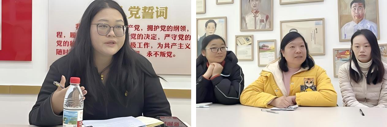 化工与材料工程学院副院长蔡喆、实验实训中心主任陶梅平、支部党员汤璐和杜妮老师进行了交流,分别围绕人才培养模式、实践教学的开展、“导师制”建设、课程思政的融合和双师队伍建设等内容展开交流。强调党建赋能化工专业人才培养,首要任务是通过思想引领,筑牢教师“安全为基、廉洁从业”的思想防线,帮助学生树立“科技报国、绿色发展”的价值理念。