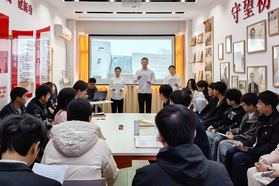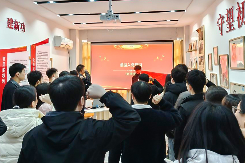 (通讯员 呼丽娜 摄影 王思琦)为深入学习贯彻党的二十届四中全会精神,充分发挥基层党组织战斗堡垒作用和党员先锋模范作用,2025年11月25日中午,建筑工程学院党总支在“初心·党员红色驿站”开展特色主题党日活动。 (一)活动主题 红色驿站筑匠梦 研路护航润匠心 (二)参与人员 建筑工程学院党总支教师党员代表、建筑工程学院党总支第三党支部、第四党支部。 (三)活动纪实 活动在雄壮的国歌声中拉开帷幕。全体党员面向党旗,重温入党誓词。