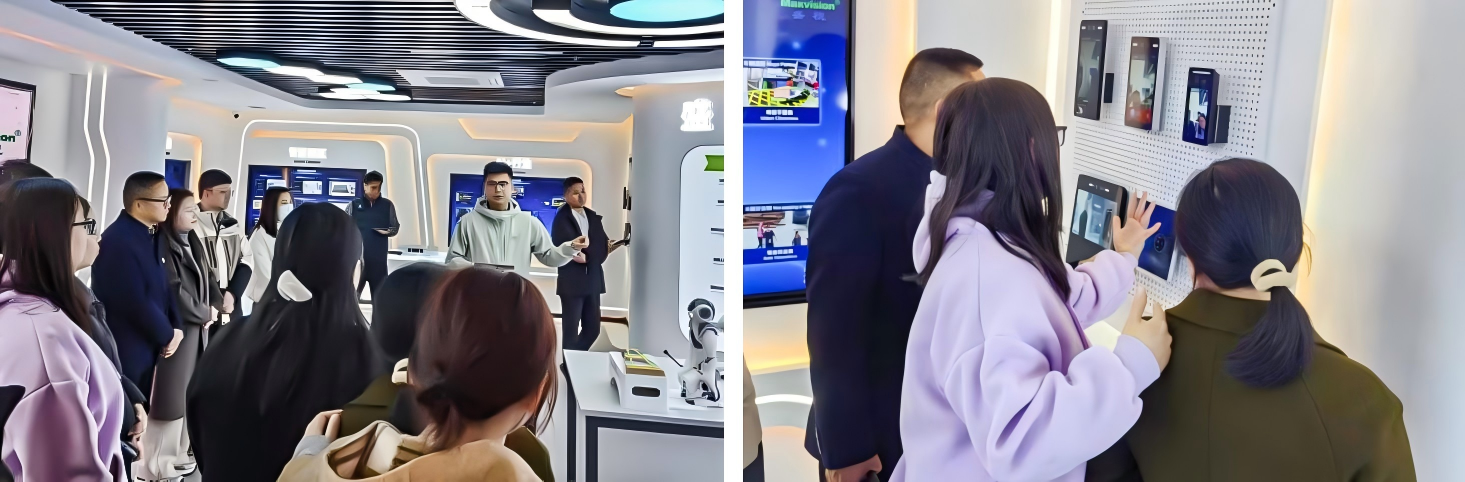 随后,师生党员步入盛视科技展厅与实验室,在盛视科技公司智慧系统事业部销售总监袁凌志的引导下,实地参观智能安防、智慧口岸等领域的核心产品,体验AI算法调试、设备联动操控等技术环节。通过从产品原型到落地场景的展示,党员们直观感受到“技术从实验室走向产业”的创新链条,深刻领悟了“产学研融合”的现实价值。