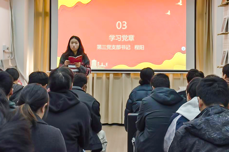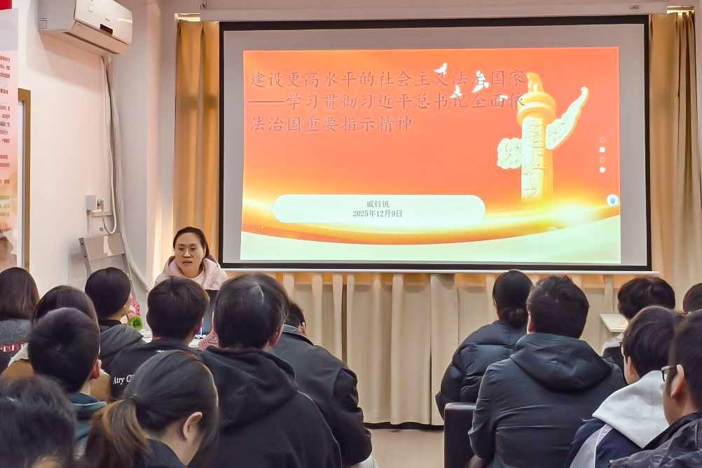 第四党支部书记戚钰钒带来微党课《建设更高水平的社会主义法治国家——学习习近平总书记对全面依法治国工作作出的重要指示》。她紧扣全面依法治国的时代要求,系统阐释了习近平总书记相关重要指示的核心要义,并结合学院育人实际,讲解了法治思维在学生管理、教学科研等工作中的实践应用,推动法治理念在师生党员心中落地生根。