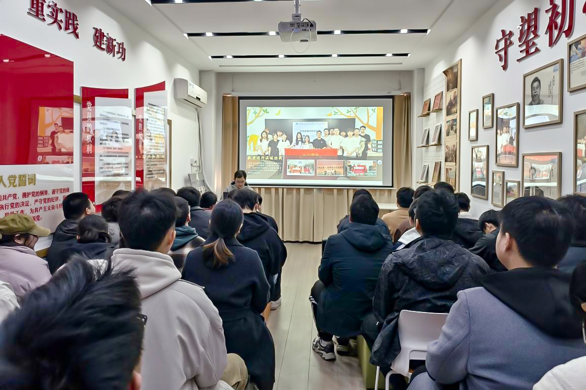 (通讯员 毛礼娜 摄影 严子轩)为常态化推进党规党纪学习教育,坚持纪在法前、纪法衔接,强化党员法纪意识与党性修养,发挥先进典型示范引领作用,2025年12月9日下午,机械与电气工程学院第三党支部、第四党支部于三教四楼初心驿站联合开展“学法明纪强党性 树标立杆勇担当”特色主题党日活动。活动由党务干事毛礼娜主持。 (一)活动主题 学法明纪强党性 树标立杆勇担当 (二)参与人员 机械与电气工程学院第三党支部、第四党支部全体师生党员 (三)活动纪实 在全体党员齐唱国歌的庄严旋律中,主题党日活动正式拉开帷幕。党总支副书记龚萍领誓,全体党员面向鲜红党旗,高举右拳、庄严宣誓,重温入党誓词。 第三党支部书记程阳带领全体党员聚焦《中国共产党章程》节选内容,开展第二章“党的组织制度”专题领学。领学过程中,程阳同志立足基层党建工作实际,先从党的组织制度的整体定位切入,向党员们阐明了该章节在《中国共产党章程》中的核心地位,以及其作为党的建设根本遵循、保障党的团结统一的重要意义。