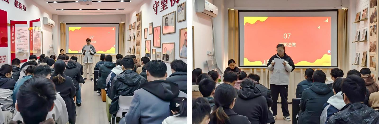 在“述学述做”环节,党员代表刘鑫智、向沐阳结合学习内容与岗位实际分享感悟与规划。两人表示,学生党员应将党纪教育融入日常,以法治思维规范言行、发挥先锋作用,强调党纪教育是终身必修课,须常怀纪律规矩意识,牢记党员身份。具体承诺学习上严守诚信底线,杜绝作弊;在生活中主动学习宣传党纪校规,带动班级遵规守纪。未来将持续深化理论,推动党纪法治要求内化于心、外化于行,立足岗位作表率践使命。